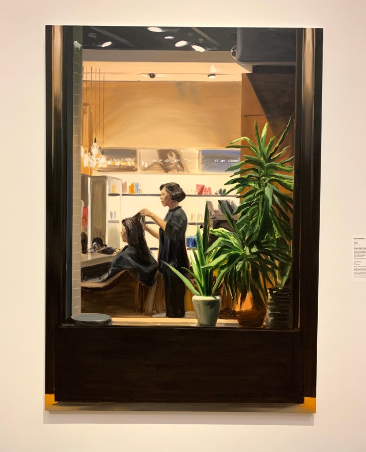 Reynolds’ glorification becomes the antagonist of the room through a multitude of comparisons. Caroline Walker’s ‘Conditioning’ focuses on the female, a largely undocumented sub-genre of historical portraiture, helping to bridge the gap between formality and unposed scenes of everyday life. Walker draws on the past to question present issues. By painting the unseen woman, her value is reinstated through the paint applied to canvas, giving the same spotlight to attack the hierarchical rules. Social, economic, and political issues are raised. Reynolds is placed in a position in which his subject overlooks Walker’s hairdressing scene, reinforcing the subversion of the notion of the male gaze. An overall feeling of protest back and forth can be attributed to this room. Much like in the room focused on history, the wealthy is juxtaposed by unemployment, deindustrialisation and social deprivation, topics still present and relevant in contemporary society.
